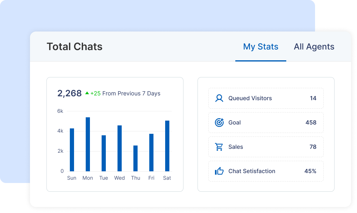 Create comprehensive reports that provide a detailed overview of your chat interactions. Customize reports to focus on specific metrics or areas of interest. Share these insights with your team to drive continuous improvement and achieve your support goals.