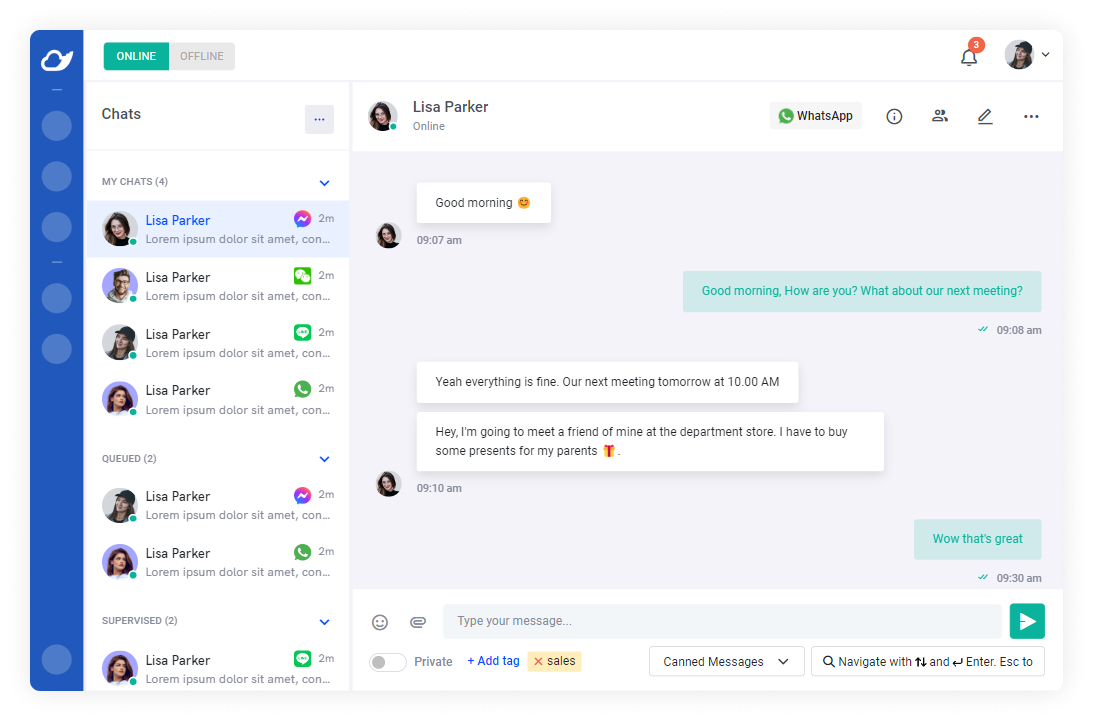 OMO’s Live Chat platform offers a user-friendly layout that allows your support team to manage multiple chats simultaneously. The system categorizes chats into active, pending, and handled, ensuring no customer query is missed. Utilize canned messages to provide quick and consistent responses, and easily transfer chats between departments for specialized support.
