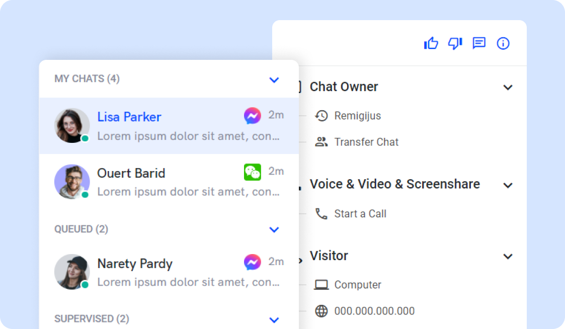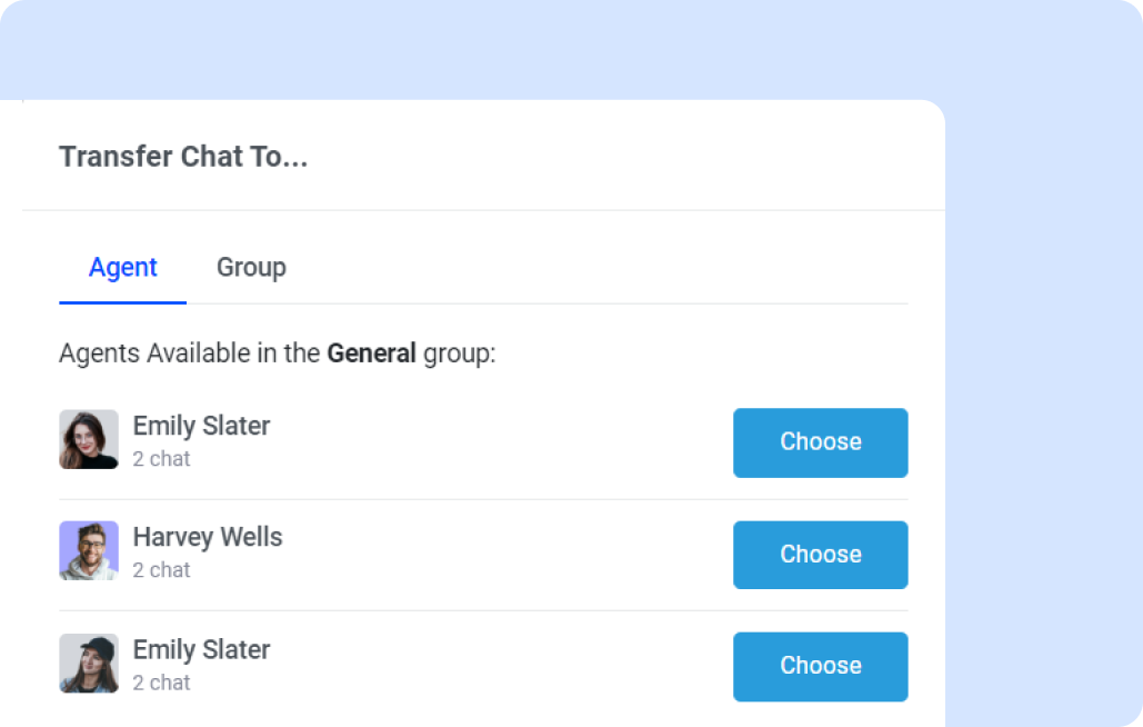 Seamlessly transfer chats between departments.